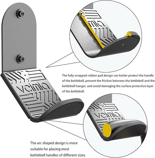 Kettle Bell Wall Rack, Wall Mounted Kettle Bell Storage Hanger, Gym Storage Mount for Many Size Kettlebell, Kettlebell Rack with Rubber mat is Choice for Home or Commercial Gyms