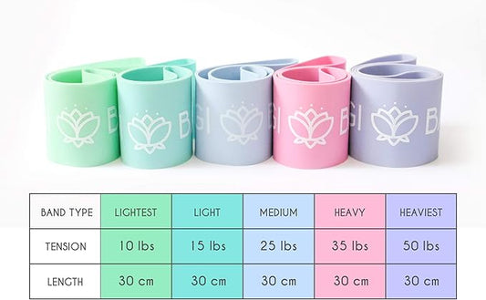 XNM Creations Yogi Bands - Loop Resistance Bands for Working Out, Fitness and Yoga Exercise – Set of 5 Pastel Exercise Bands