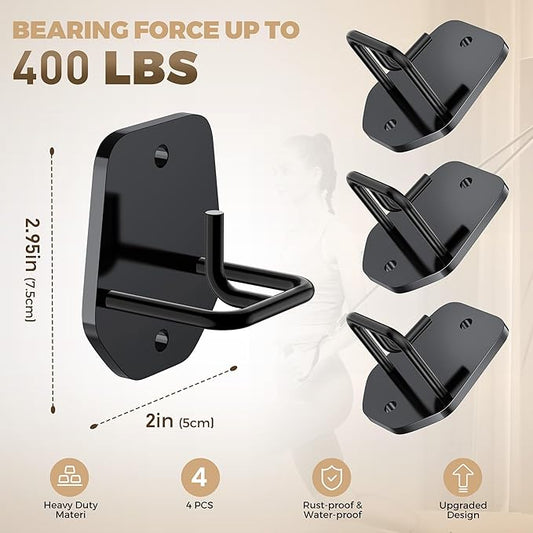 4 Pcs Resistance Band Anchors - Space-Saving Wall Mount Workout Anchors for Exercise Bands - Upgrade Home Gym Wall Hooks for Strength Training, Fitness, Physical Therapy