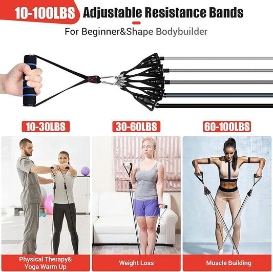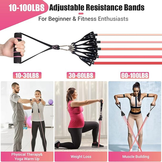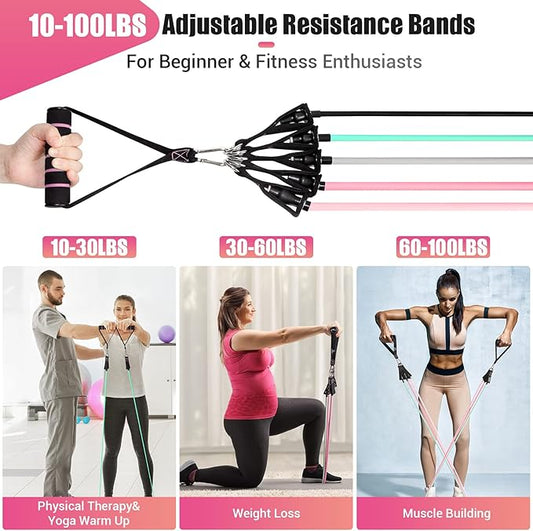Resistance Bands with Handles for Women, 5 Level Exercise Bands Workout Bands for Physical Therapy, Yoga, Pilates, Door Anchor, Storage Pouch