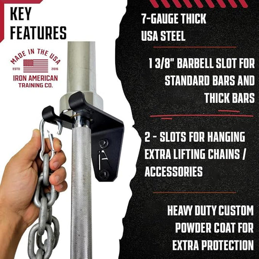 IRON AMERICAN Alpha Barbell Gym Wall Mount Storage 100+ Pound Capacity - Multi-Use Barbell Wall Holder, Barbell Hanger 4.25 x 6.75 x 7.25 Inches - Holds Any Standard Olympic Barbell - Hardware Included