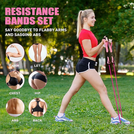 Resistance Bands, Exercise Bands with Handles for Working Out, Fitness Bands for Women, Workout Equipment Home Gym, Training Bands with Door Anchor, Ankle Straps, Shape Body, Physical Therapy