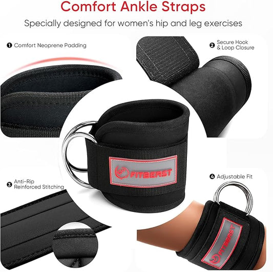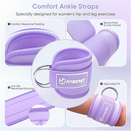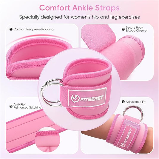 FitBeast Ankle Straps for Cable Machines Women, Glute Kickback Ankle Strap Set with Gym Handles for Cables & Ankle Cable Straps for Workout - Gym Attachments for Cable Machine
