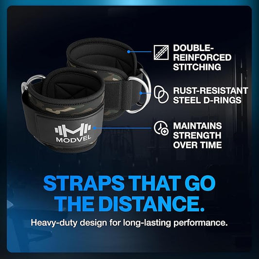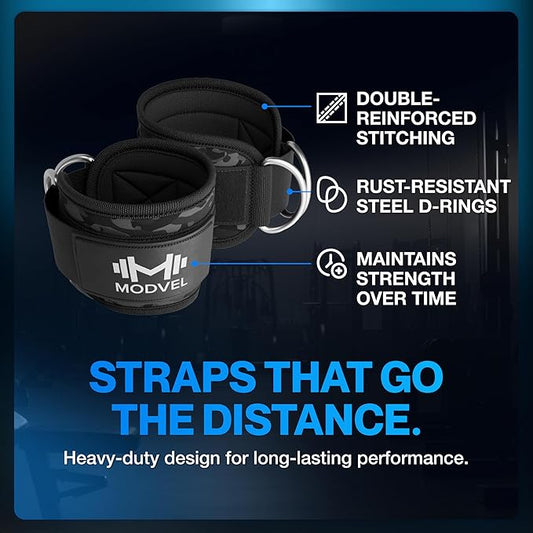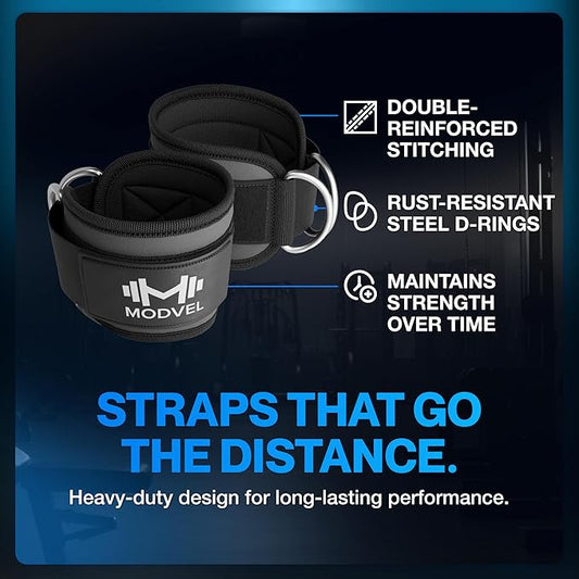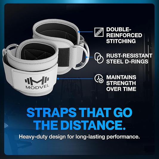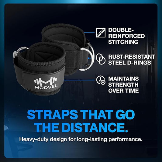 Modvel Gym Ankle Strap for Cable Machines – Glute & Leg Kickback Ankle Straps for Gym Workouts – Adjustable, Padded Support for Strength Training, Weightlifting, Rehab – Men & Women