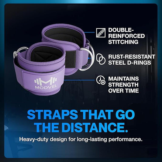 Modvel Gym Ankle Strap for Cable Machines – Glute & Leg Kickback Ankle Straps for Gym Workouts – Adjustable, Padded Support for Strength Training, Weightlifting, Rehab – Men & Women