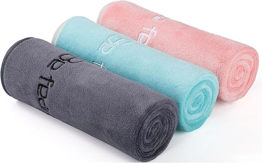 Microfiber Gym Towels Bigger Size Super Soft for Exercise Fitness, Sports, Workout, 380-GSM 15-Inch x 31-Inch Quick-Drying Towels (Teal-Pink-Grey, 3 Pack)