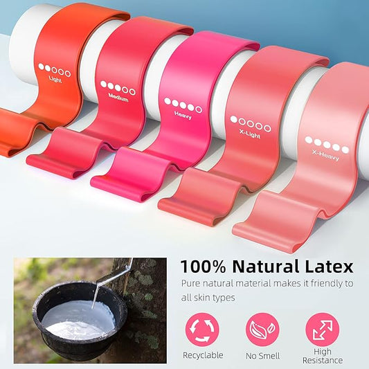 GOCHA | Resistance Bands Set (5 Pack) - Premium Natural Latex Loop Bands for Strength Training, Home Workouts, Physical Therapy, Yoga - Exercise Bands with Carry Bag (X-Light to X-Heavy)