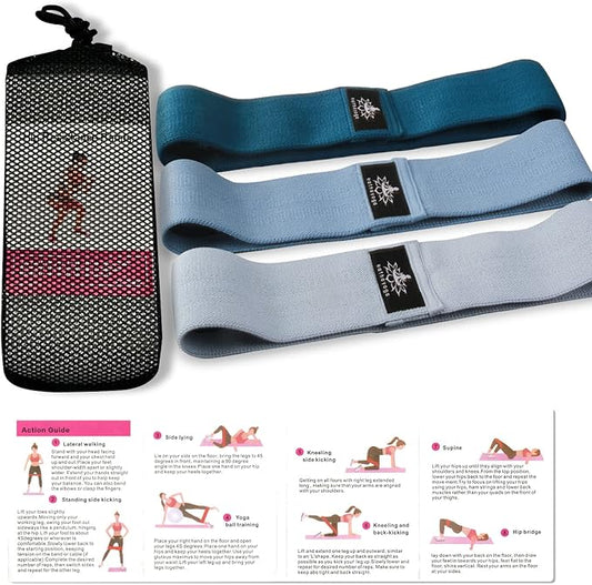 Hatha Yoga Large Resistance Band,14.5" x3.15",Fabric Exercise Loop Bands with Instruction Guide and Carry Bag, Set of 3.