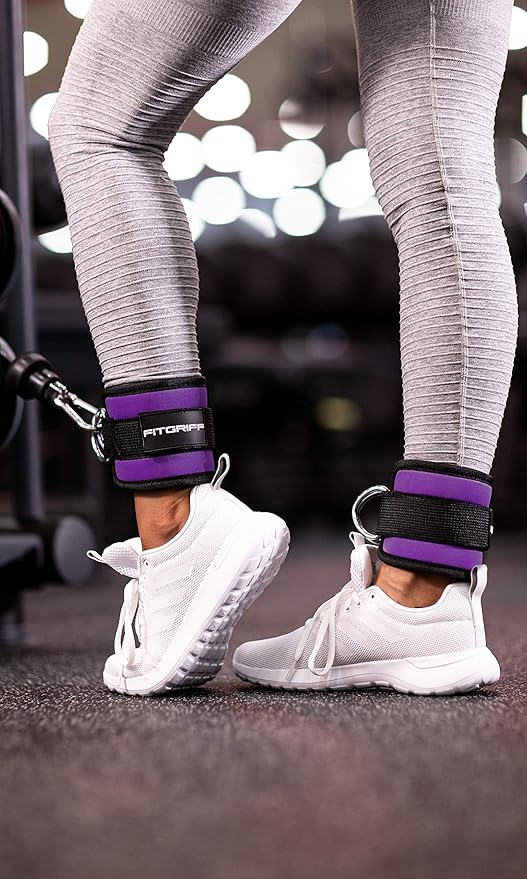 Fitgriff® Ankle Straps V1 for Cable Machine (2 Pieces) - Gym Workout Equipment - Leg Pulley Attachment, Kickback Straps