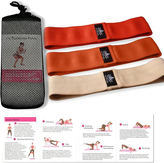 Hatha Yoga Large Resistance Band,14.5" x3.15",Fabric Exercise Loop Bands with Instruction Guide and Carry Bag, Set of 3.