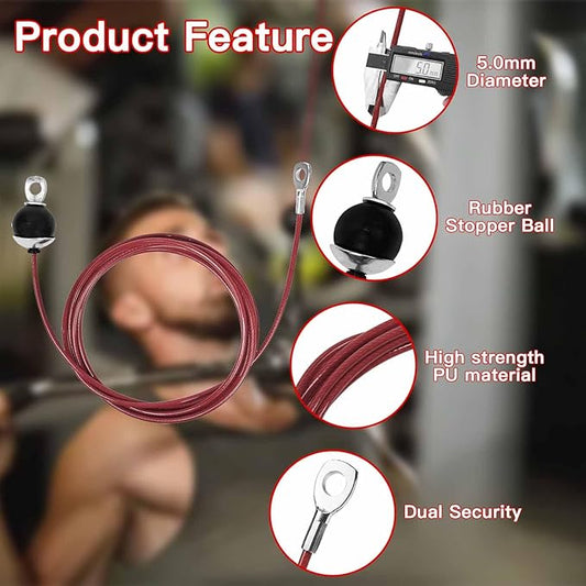Adjustable Fitness Pulley Cable,Replacement Cable Machine Accessories,Cable Pulley Attachments for Gym -Thick 5mm(0.2inch) Heavy Duty Steel Wire Rope for Home Gym Cable