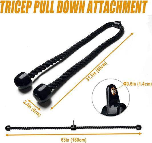 KORIKAHM Long Tricep Rope, Rope Pull Down Attachment 47 55 63Inch Length Long, Tricep Rope Cable Attachment, Tricep Pull Down Rope for Home Gym Pulley System,Cable Machine Attachment
