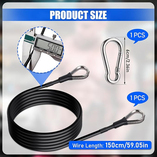 2PCS Gym Cable Extension,Replacement Cable Machine Accessories,Cable Pulley Attachments for Gym -Thick 5mm(0.2inch) Heavy Duty Steel Wire Rope for Home Gym Cable, Leg Extensions Machine