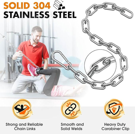 23.6" Gym Fitness Cable Extension Chain, 304 Stainless Steel Cable Machine Extension Accessory, Workout Chain for Home Gym Replacement, Weight Lifting, Triceps Exercise