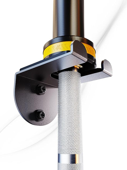 VAIIO Single Olympic Barbell Hanger,Garage Gym Bar Wall Rack,Vertical Barbell Mount Rack,Black Powder Coated,Space Saving Commercial or Home Gym Accessory,Holds Under 33mm Bar Size