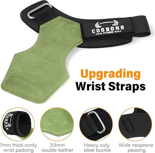 Lifting Wrist Straps for Weightlifting, Double Layer Leather for Weight Lifting Wrist Wraps, Deadlifts, Heavy Powerlifting and Adjustable Wrist Hooks for Strength Training, Gym Workouts Men/Women