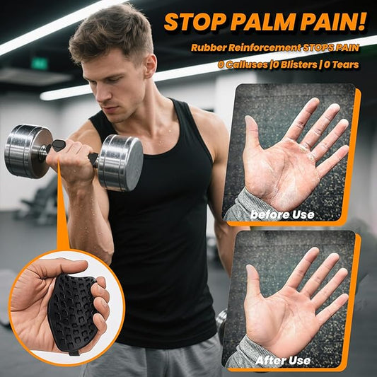 Workout Grips,Rubber Fingerless Gym Gloves, Pull Up Grips for Men Women Crosstraining Palm Grips Hand Protection,Suitable for Gym & Home Workouts, Improves Grip Strength