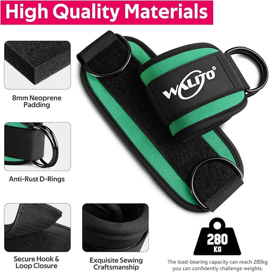 WALITO Gym Ankle Straps for Working Out - Glute Ankle Cuff Kickback Strap, Gym Cable Machine Accessories for Women Glute Leg Extensions, Hip Abductors & Lower Body Exercises Equipment