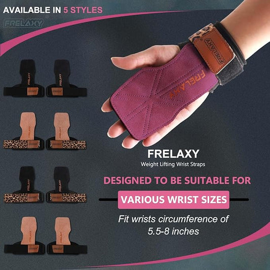 Frelaxy Lifting Wrist Straps Women and Men, Weight Lifting Grips with Cushion Wrist Loop, Double Layer Leather and Storage Pouch, Gym Workout Straps for Deadlift and Powerlifting