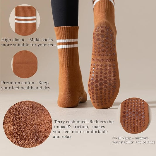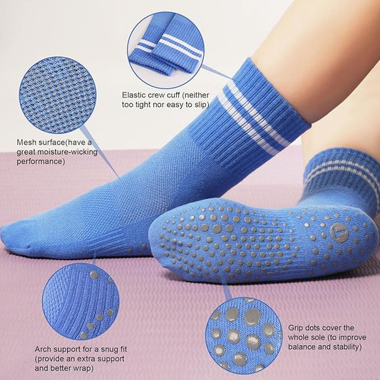Yoga Socks with Non-Slip Grips for Women - 4 Pairs Pilates, Barre, Gym, Dance Workout Anti-Skid Socks