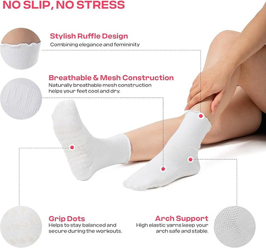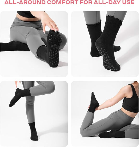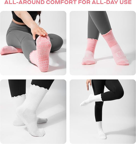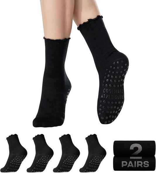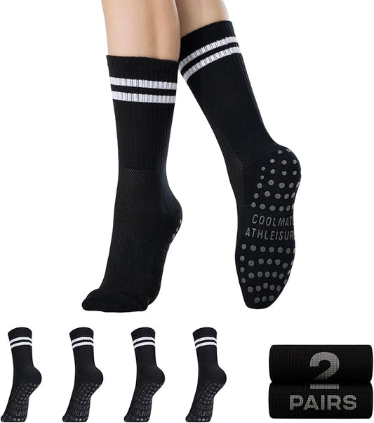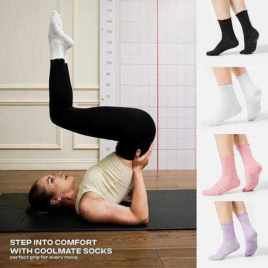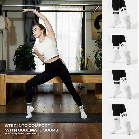 CoolMate Pilates Socks with Grips for Women, Yoga Socks, Crew Non Slip Women for Workout, Barre, Pilates Gifts