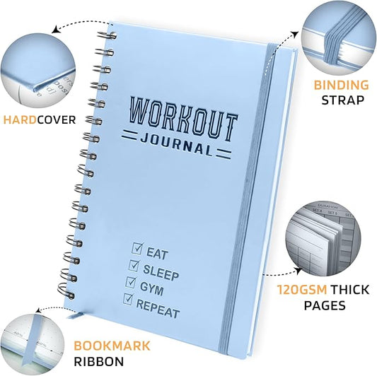 Nextnoid Hardcover Fitness Journal Workout Planner for Men & Women - A5(5.7" x 8.3") Sturdy Workout Log Book to Track Gym & Home Workouts - Blue