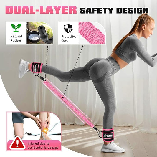 Ankle Resistance Bands with Cuffs, Leg and Glutes Workout Equipment, Resistance Bands with Ankle Straps for Cable Machine Kickbacks, Booty Workouts, Lower Body Exercises - Home Gym Exercise Equipment
