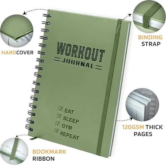 Nextnoid Hardcover Fitness Journal Workout Planner for Men & Women - A5(5.7" x 8.3") Sturdy Workout Log Book to Track Gym & Home Workouts - Green