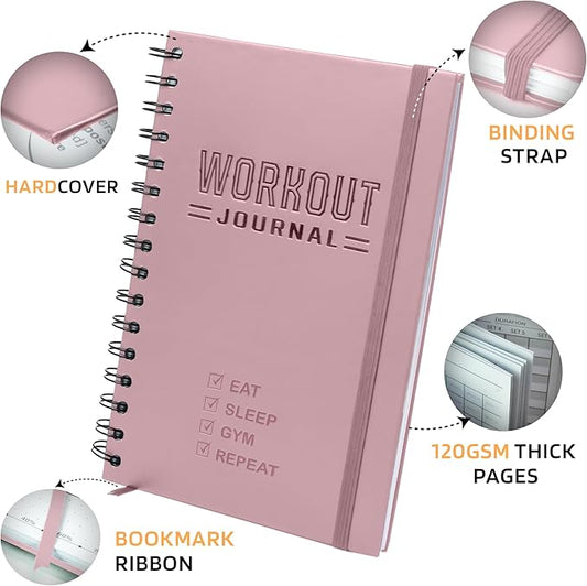 Hardcover Workout Planner Fitness Journal for Women & Men - A5(5.7" x 8.3") Sturdy Workout Log Book to Track Gym & Home Workouts - Pink