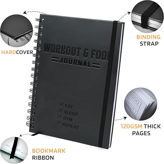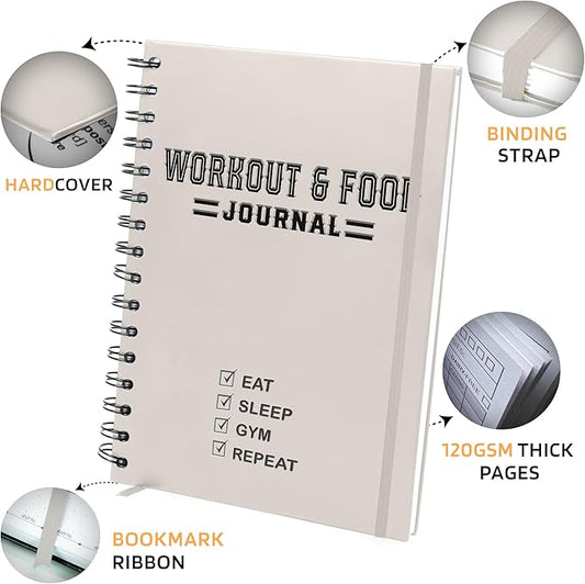 Nextnoid Hardcover Fitness & Food Journal - Nutrition & Workout Planner for Men & Women - A5(5.7" x 8.3") Sturdy Workout Log Book to Track Diet, Gym & Home Workouts
