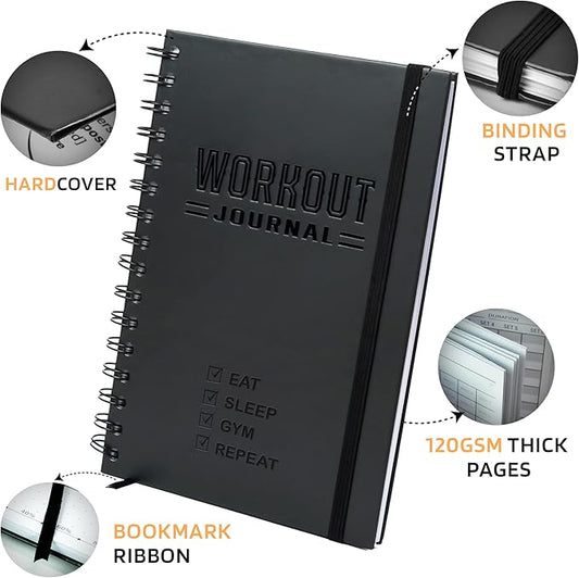 Nextnoid Hardcover Fitness Journal Workout Planner for Men & Women - A5(5.7" x 8.3") Sturdy Workout Log Book to Track Gym & Home Workouts