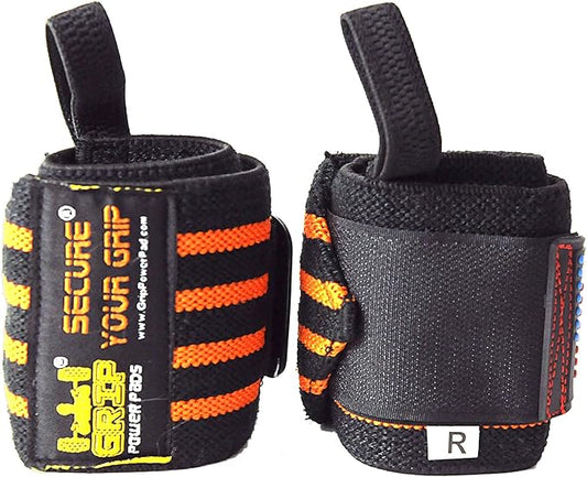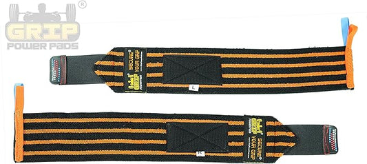 Grip Power Pads Wrist Wraps 2 Wraps for Weight Lifting Wrist Support Cotton Wraps Gym Bandage Straps for Men & Women Premium Quality & PRO Rubber