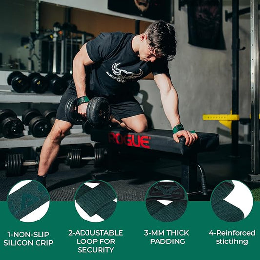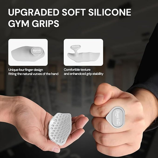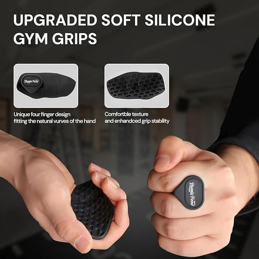 Ergonomic-Gym-Grips-for-Men-&-Women - Soft Silicone Weight Lifting Grips for Dumbbells, Barbells, Pull-Ups, Deadlifts - Fingerless, Sweat-Resistant, Includes Portable Case