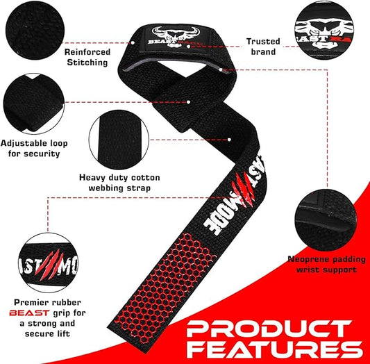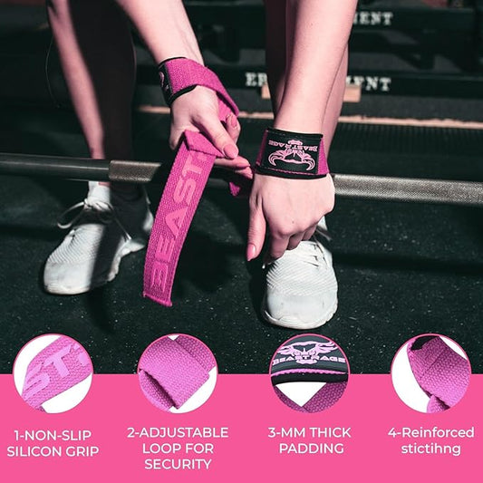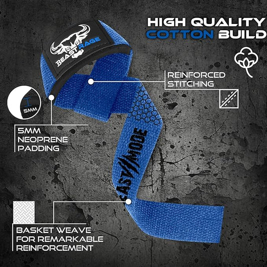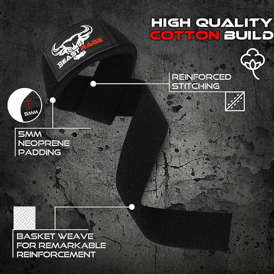 BEAST RAGE Lifting Wrist Straps for Weightlifting, Weight Lifting Straps Gym Grip Power Workouts Lifting Straps Padded Cotton Men Women Wrap Lift Deadlift Straps Hard Pull Exercise