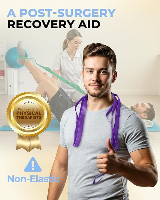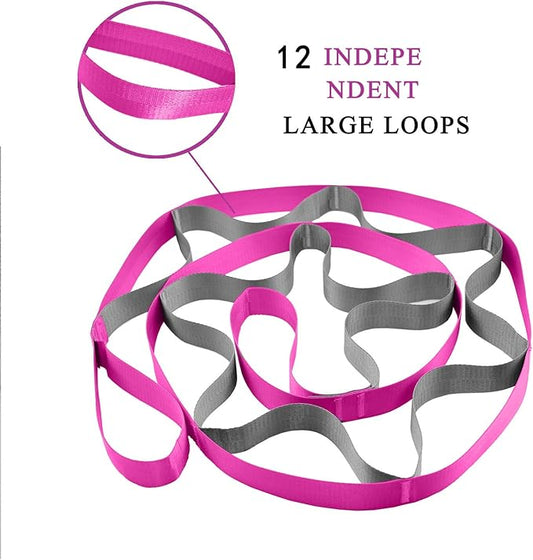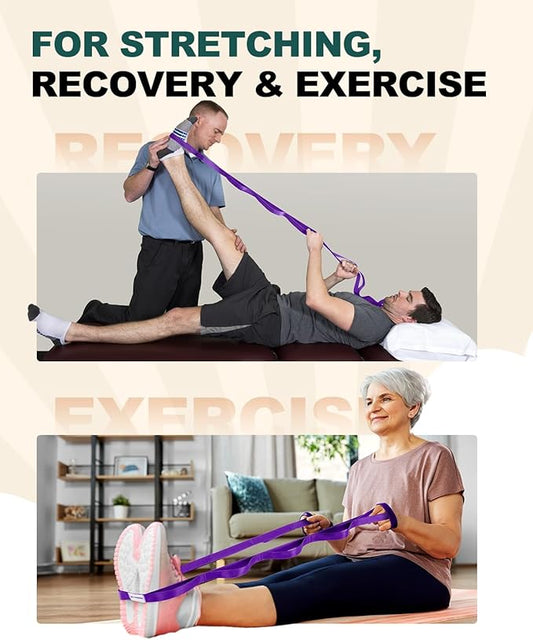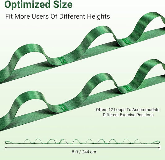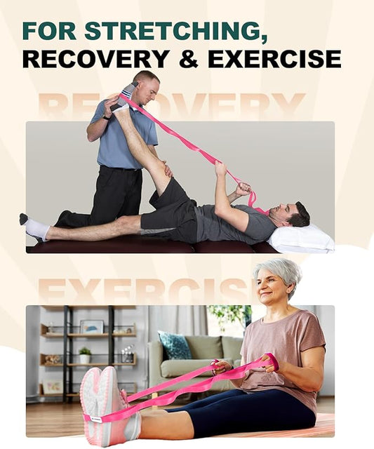 Stretch Strap With Loops For Physical Therapy, Yoga Straps For Stretching With Loops, Non-elastic Leg Straps For Knee Rehab, 8 ft Long x 1.2 inch Wide