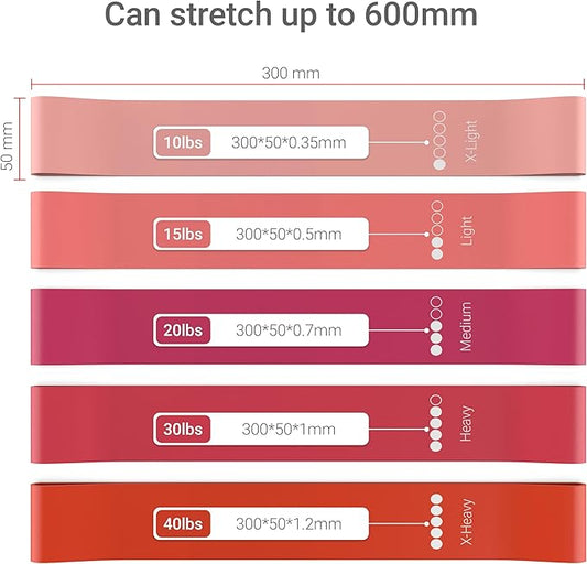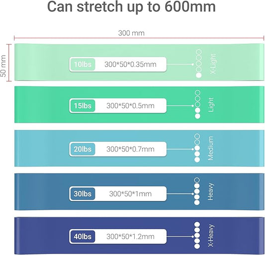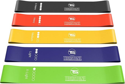 TechStone Resistance Bands Set for Men and Women, Pack of 5 Different Levels Elastic Band for Home Gym Long Exercise Workout – Great Fitness Equipment for Training, Yoga – Free Carrying Bag