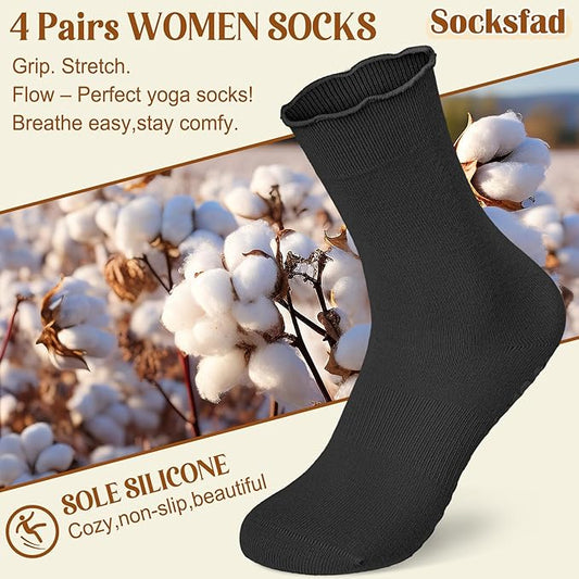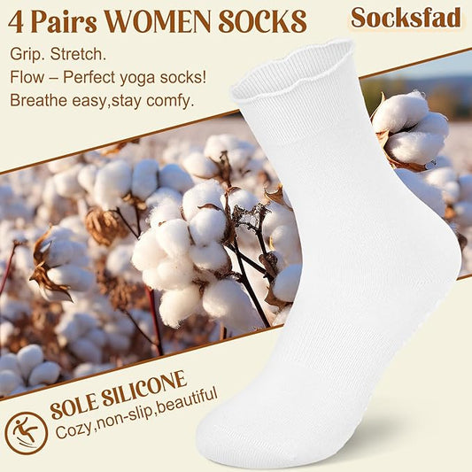 4 Pairs Pilates Socks with Grips for Women Yoga Ruffle Cute Grip Socks Pilates Non Slip Crew Ballet Hospital Workout