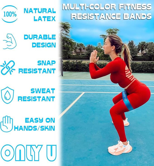 Only U Resistance Bands Set - Exercise, Fitness, Yoga & Pilates Bands Kit for Home Gym Workout for All Levels of Fitness, Set of 5 Bands with Different Resistance, Carry Bag