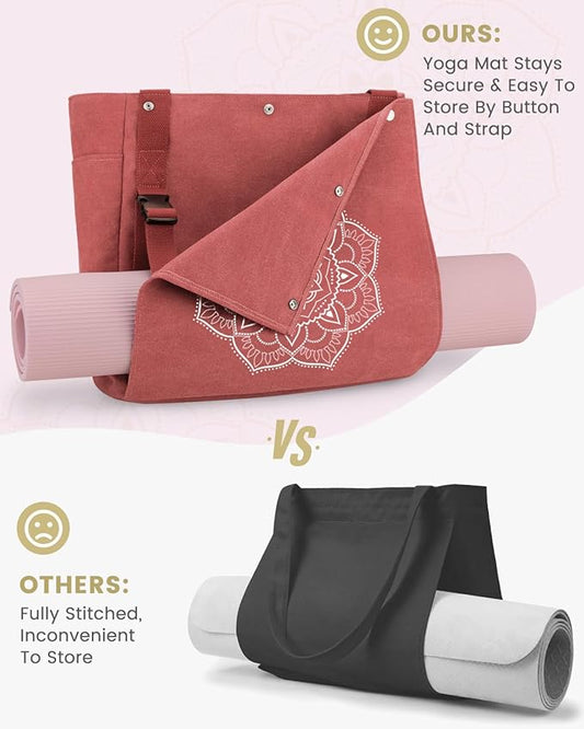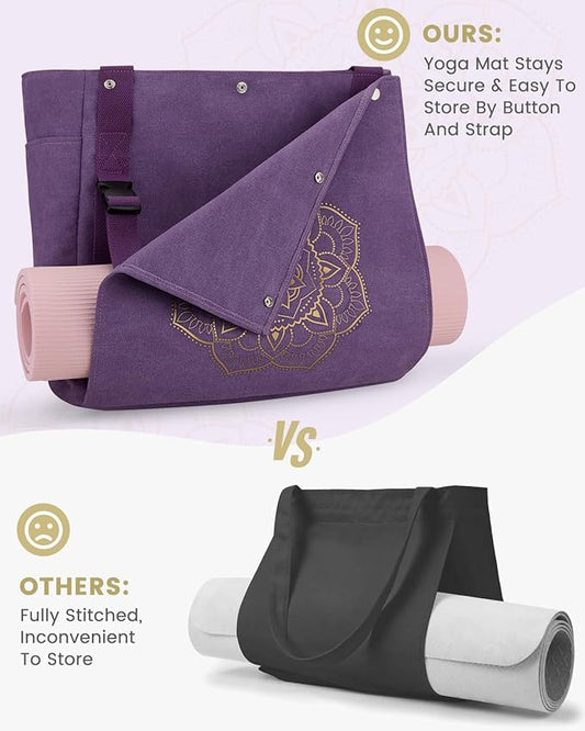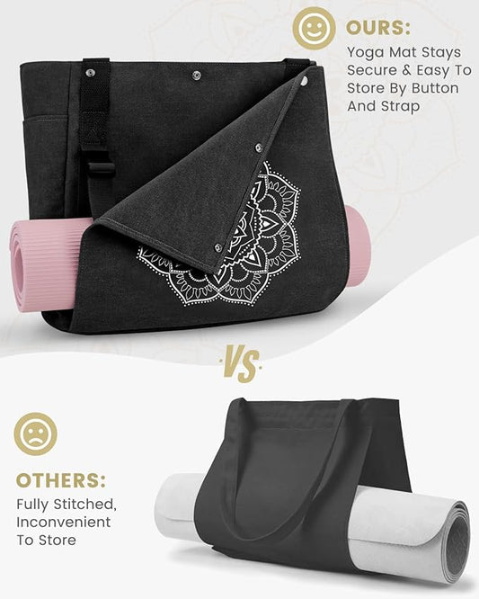 Gonex Yoga Mat Bag, Yoga Gym Bag Tote Bag with Multi Pockets For Women Men, Canvas Yoga Mat Carrier Take in Out Mat Easily For Pilates Travel Workout Office