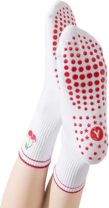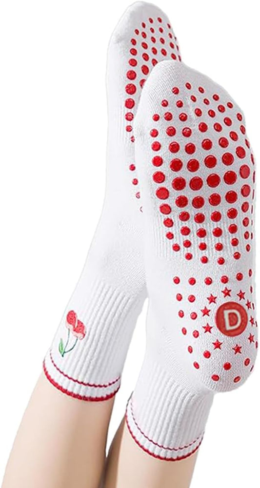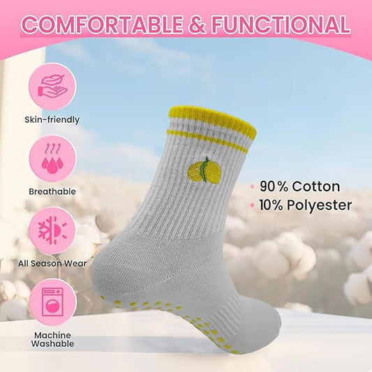 DADAB Cute Pilates Grip Socks for Women – Yoga Grippy Non Slip Barre Sticky Crew Socks for Workout, Hospital Use