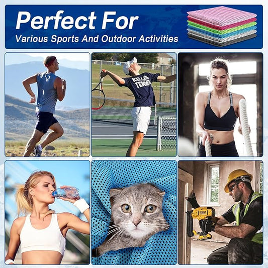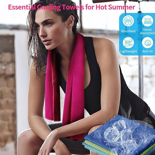 4 Pack Cooling Towels (40"x12") - Instant Cooling Reusable Microfiber Towels for Sports, Gym, Camping, Yoga, Fitness & More