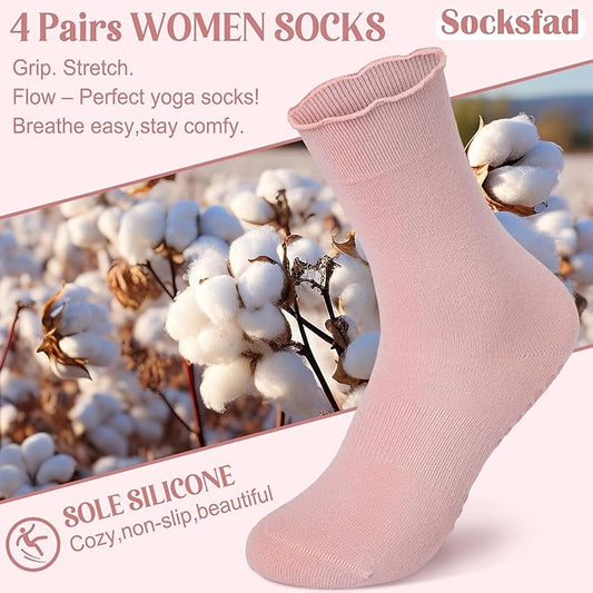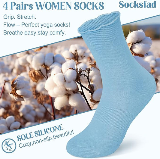 4 Pairs Pilates Socks with Grips for Women Yoga Ruffle Cute Grip Socks Pilates Non Slip Crew Ballet Hospital Workout