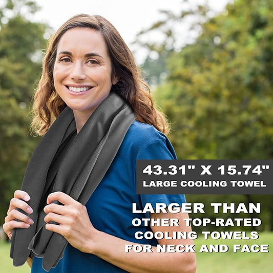 Cooling Towel 43.3" x 15.7" - Ice Sweat Towel for Neck & Face - Quick Cool Down Wrap for Summer Heat, Gym, Running, Golf, Yoga & Sports