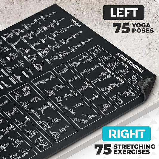 Extra-Large Instructional Yoga Mat with Poses Printed On It - 3X Bigger & 2X Wider than Regular Workout Mats - 150 Illustrated Yoga Poses and Stretches - Wide, Non-Slip, Barefoot Exercise Mat