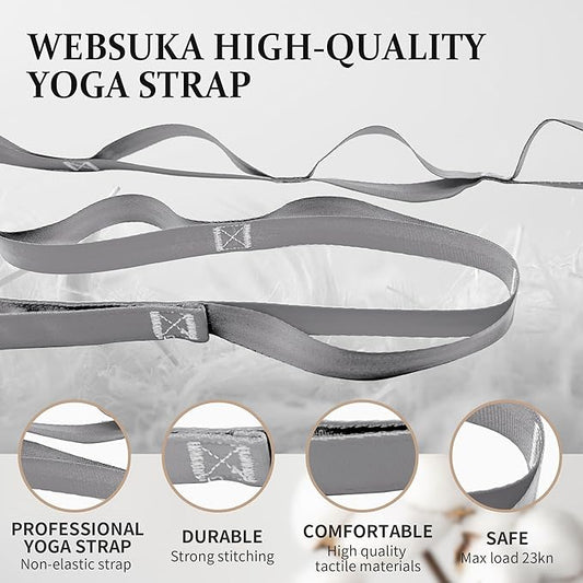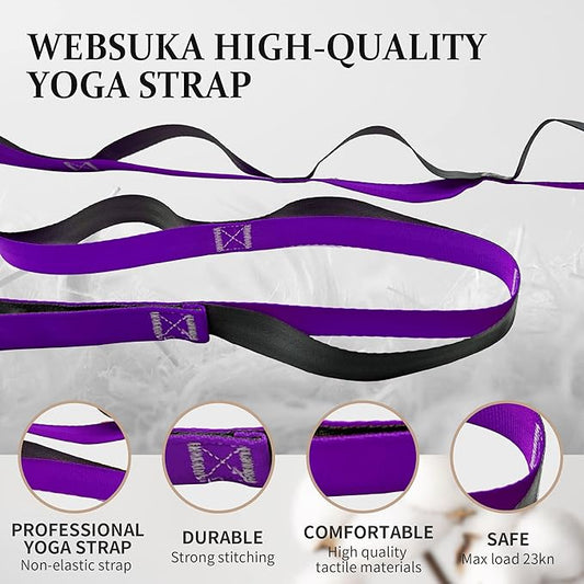 Stretching Strap Yoga Strap, 10 Loops Non-Elastic Stretch Bands Helps Women and Men Improve Flexibility for Home Workout, Physical Therapy, Pilates, Exercise, Dance, Comes with Door Anchor