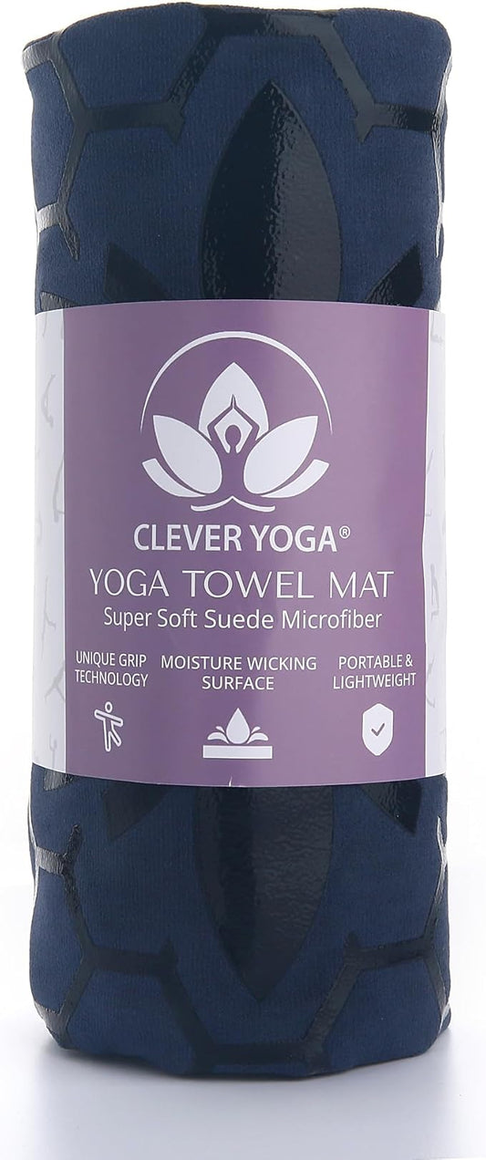 Clever Yoga Hot Yoga Mat Towel – Non-Slip Grip for Hot Yoga, Sweat Absorbent, Honeycomb Silicone Grip, Stays Flat – Ideal for Pilates, Travel, Washable & Lightweight - Dark Blue