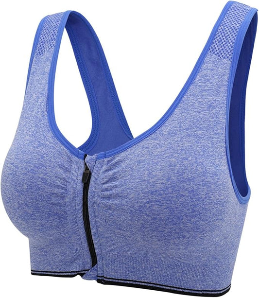 Women's Zipper Front Closure Sports Bra Racerback Yoga Bras