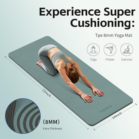 Yoga Mat 8mm Super Thick TPE Fitness Mat | SGS Certified | Non-Slip, Odorless & Tear-Resistant | Unisex with Strap | for Yoga, Pilates, Meditation & Home Workouts