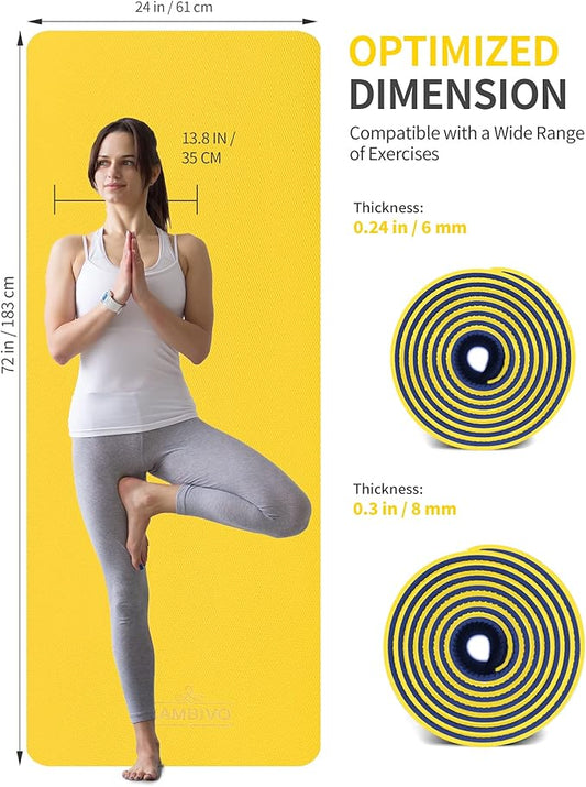 CAMBIVO Yoga Mat for Women Men Kids, 1/3 & 1/4 & 2/5 Inch Extra Thick Yoga Mat Non Slip, 72" x 24" TPE Yoga Mats, Workout Mat with Carrying Strap for Yoga, Pilates and Floor Exercises