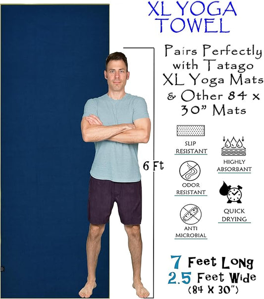 Tatago Hot Yoga Mat Towel Non Slip for Hot Yoga (72-84 inch Mats) Our Hot Yoga Towel Non Slip Silicone Dabs & Absorbent Microfiber Blend Gives You More Grip As You Drip! (Azuloro, XL - 84")